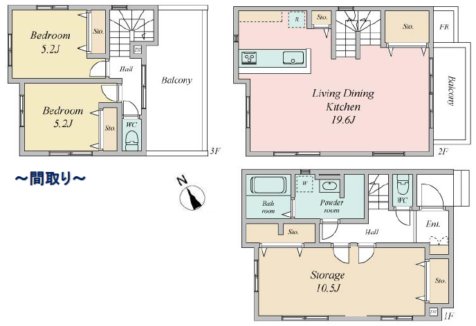 | 間取り | 2SLDK ≪LDK19.6帖、10.5帖、5.2帖、5.2帖≫ |