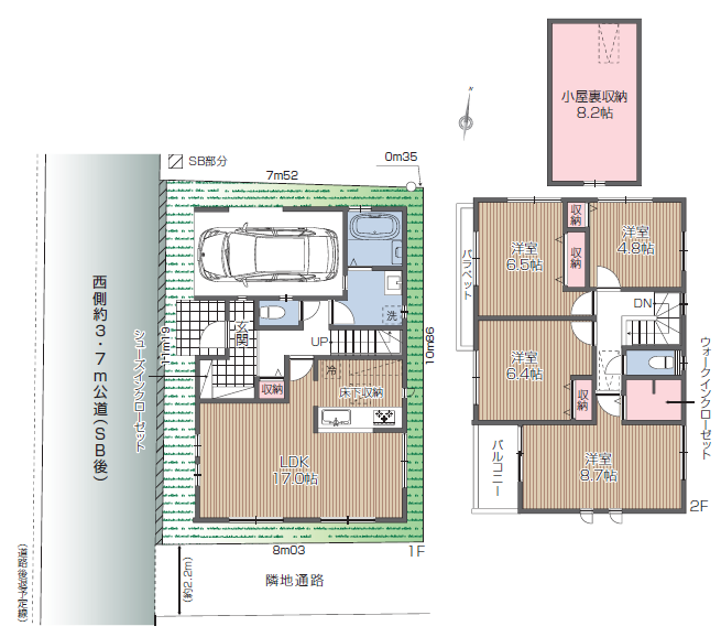 接道・方位 西側約3.7m公道 現況 未完成