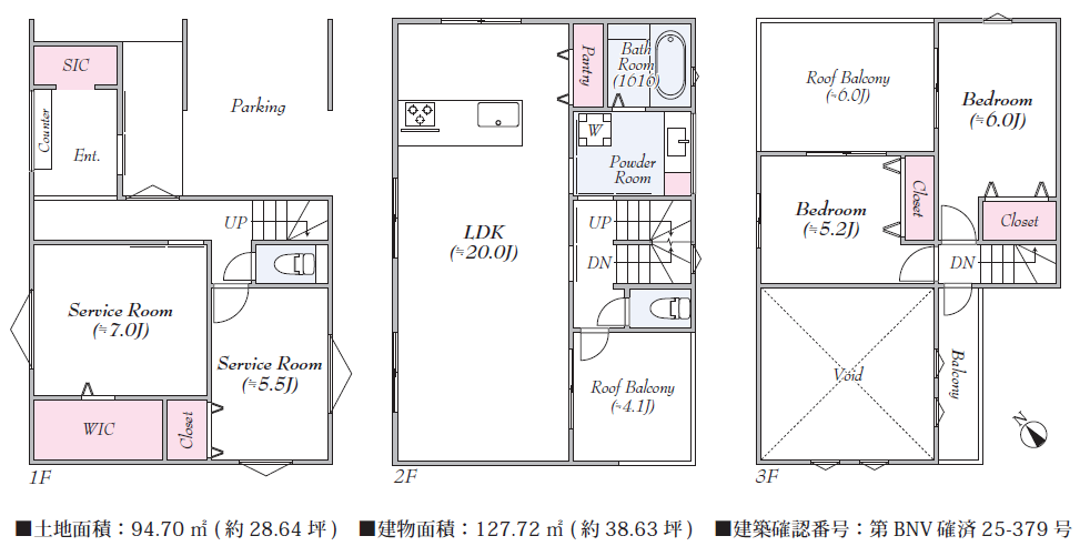 | 土地面積 | 94.7平米 / 約28.65坪 | 建物面積 | 127.72平米 / 約38.64坪 |