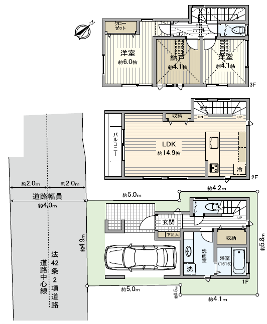 | 土地面積 | 49.03平米 / 約14.83坪 | 建物面積 | 89.49平米 / 約27.07坪 |