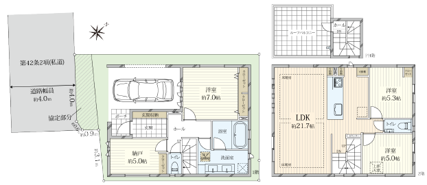| 接道・方位 | 南西側約4m私道 | 現況 | 建築中 |