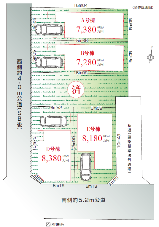 | 接道・方位 | 西側約4.0m公道 | 現況 | 未完成 |