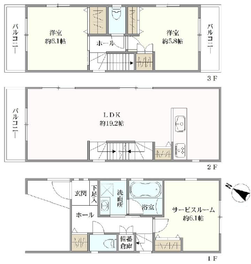 ≪LDK19.2帖、6.1帖、6.1帖、5.8帖≫