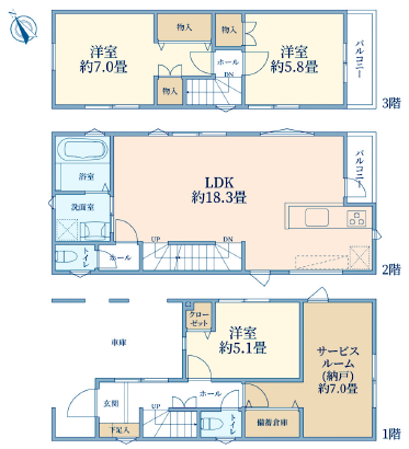 ≪LDK18.3帖、7.0帖、7.0帖、5.8帖、5.1帖≫