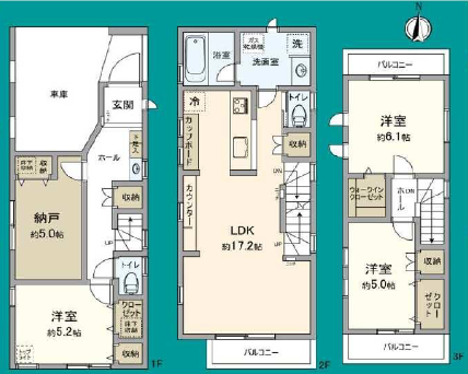 | 間取り | 3SLDK ≪LDK17.2帖、6.1帖、5.2帖、5.0帖、5.0帖≫ |