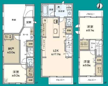 | 間取り | 3SLDK ≪LDK17.2帖、6.1帖、5.2帖、5.0帖、5.0帖≫ |