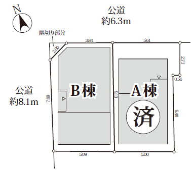 接道・方位 北側 約6.36m 公道、西側 約8.11m 公道 現況 空家