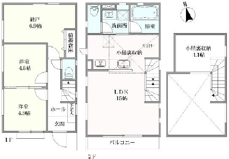 | 間取り | 2SLDK ≪LDK16.0帖、6.9帖、4.5帖、4.5帖、4.1帖≫ |