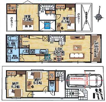 ≪LDK20.7帖、7.3帖、6.2帖、5.5帖≫