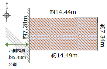 | 接道・方位 | 西側幅員約5.48m公道 | 現況 | 更地 |
