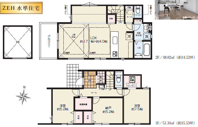 | 間取り | 2SLDK ≪LDK17.1帖+4.0帖、7.5帖、5.2帖、5.2帖≫ |