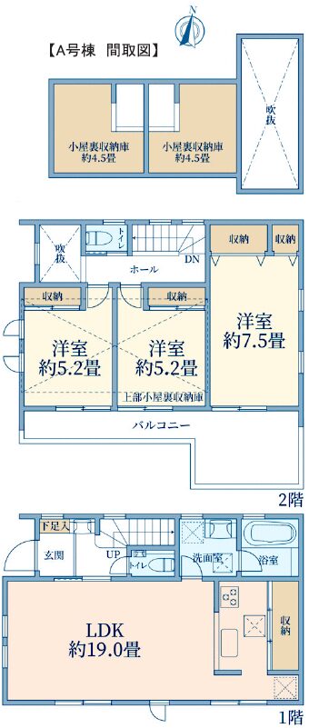 | 間取り | 3LDK ≪LDK19.0帖、7.5帖、5.2帖、5.2帖、4.5帖、4.5帖≫ |