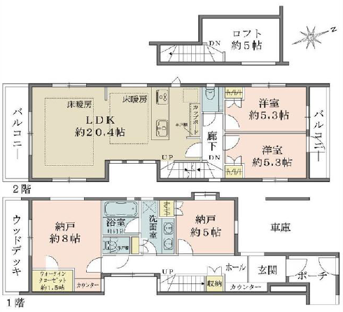 ≪LDK20.4帖、約8帖、約5.3帖、約5.3帖、約5帖、約5帖≫