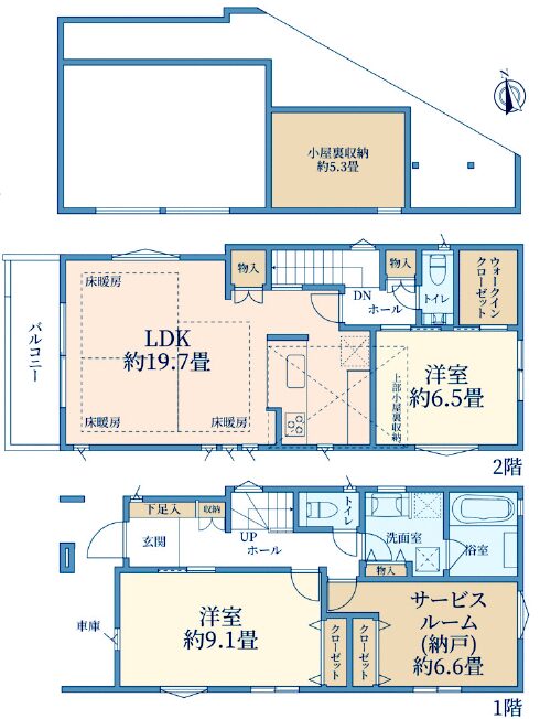 ≪LDK約19.7帖、約9.1帖、約6.6帖、約6.5帖、約5.3帖≫