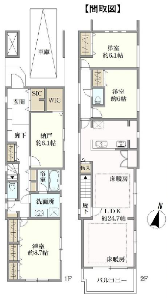 ≪LDK約24.7帖、約8.7帖、約6.1帖、約6.1帖、約6帖≫