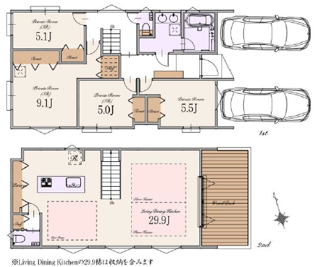| 間取り | 4LDK ≪LDK29.9帖、9.1帖、5.5帖、5.1帖、5.0帖≫ |