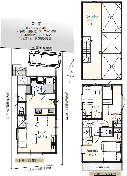 | 接道・方位 | 北側公道幅員3.37m | 現況 | 未完成 |