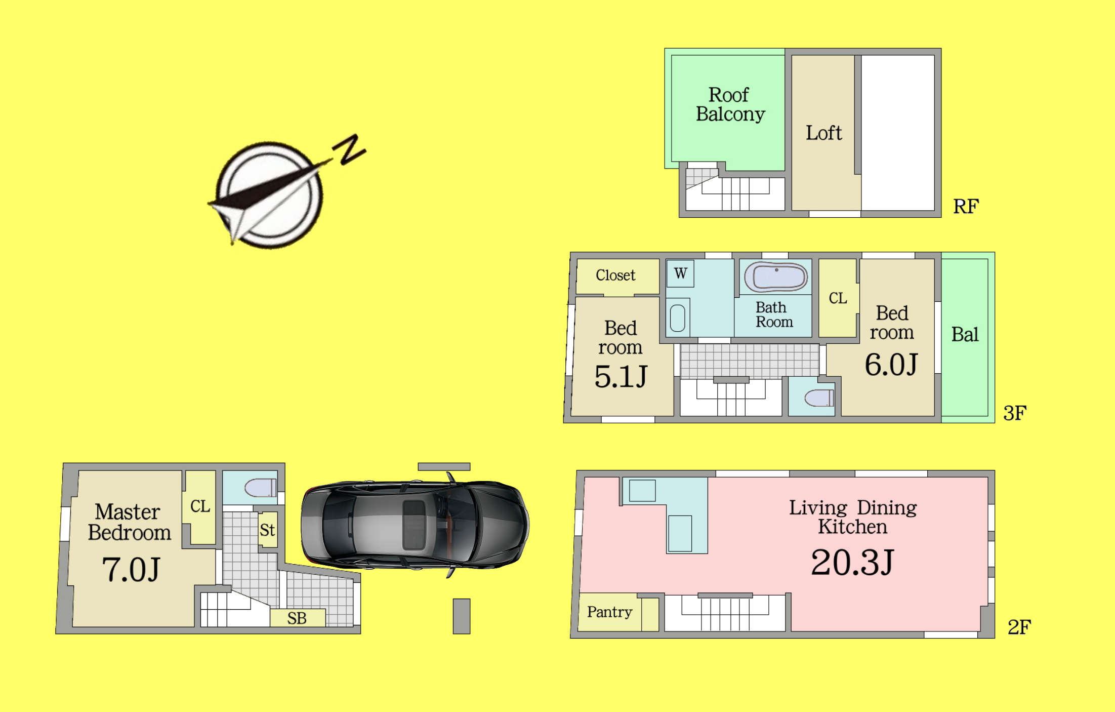 | 間取り | 3LDK ≪LDK20.3帖、7.0帖、6.0帖、5.1帖≫ |