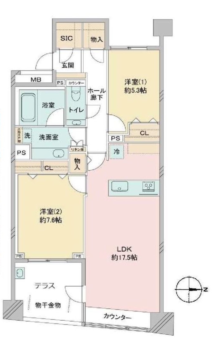 | 間取り | 2LDK ≪LDK17.5帖、7.6帖、5.3帖≫ |