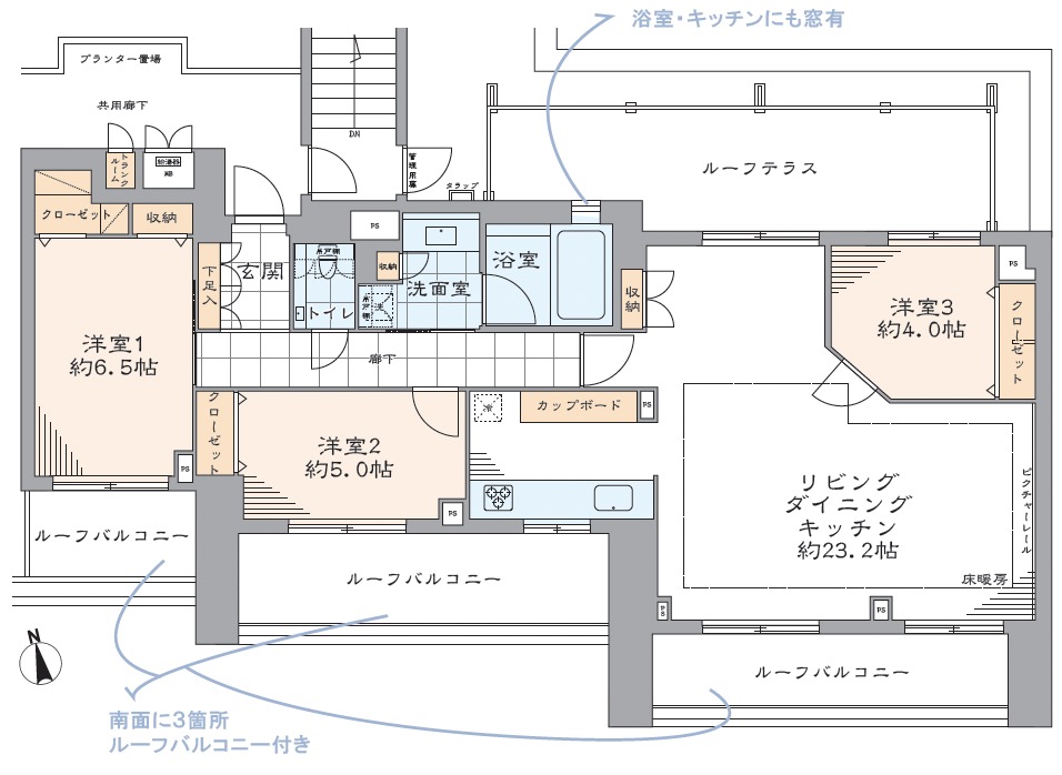 | 間取り | 3LDK ≪LDK23.2帖、6.5帖、5.0帖、4.0帖≫ |