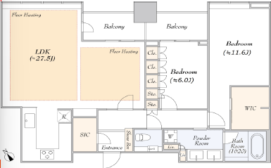| 間取り | 2LDK ≪LDK27.5帖、11.6帖、6帖≫ |