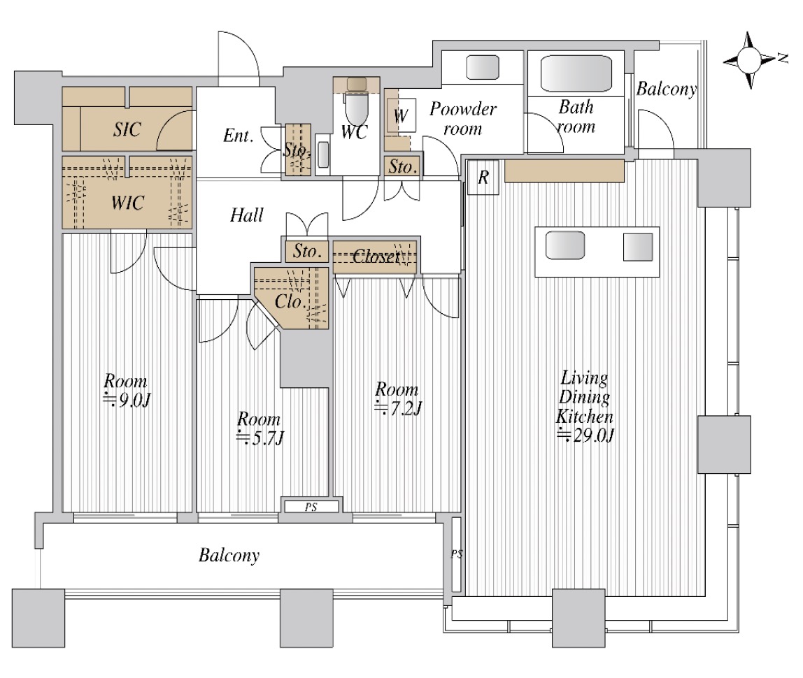 | 間取り | 3LDK ≪LDK29.0帖、9.0帖、7.2帖、5.7帖≫ |
