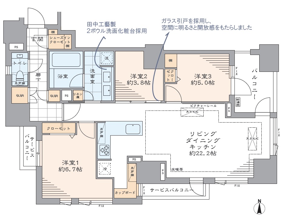 | 間取り | 3LDK ≪LDK22.2帖、6.7帖、5.0帖、3.8帖≫ |
