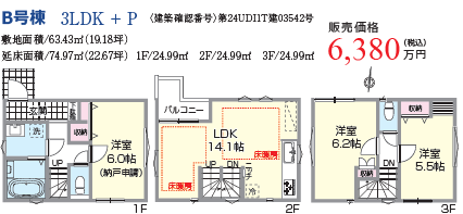 土地面積 63.43平米 / 約19.19坪 建物面積 74.97平米 / 約22.68坪