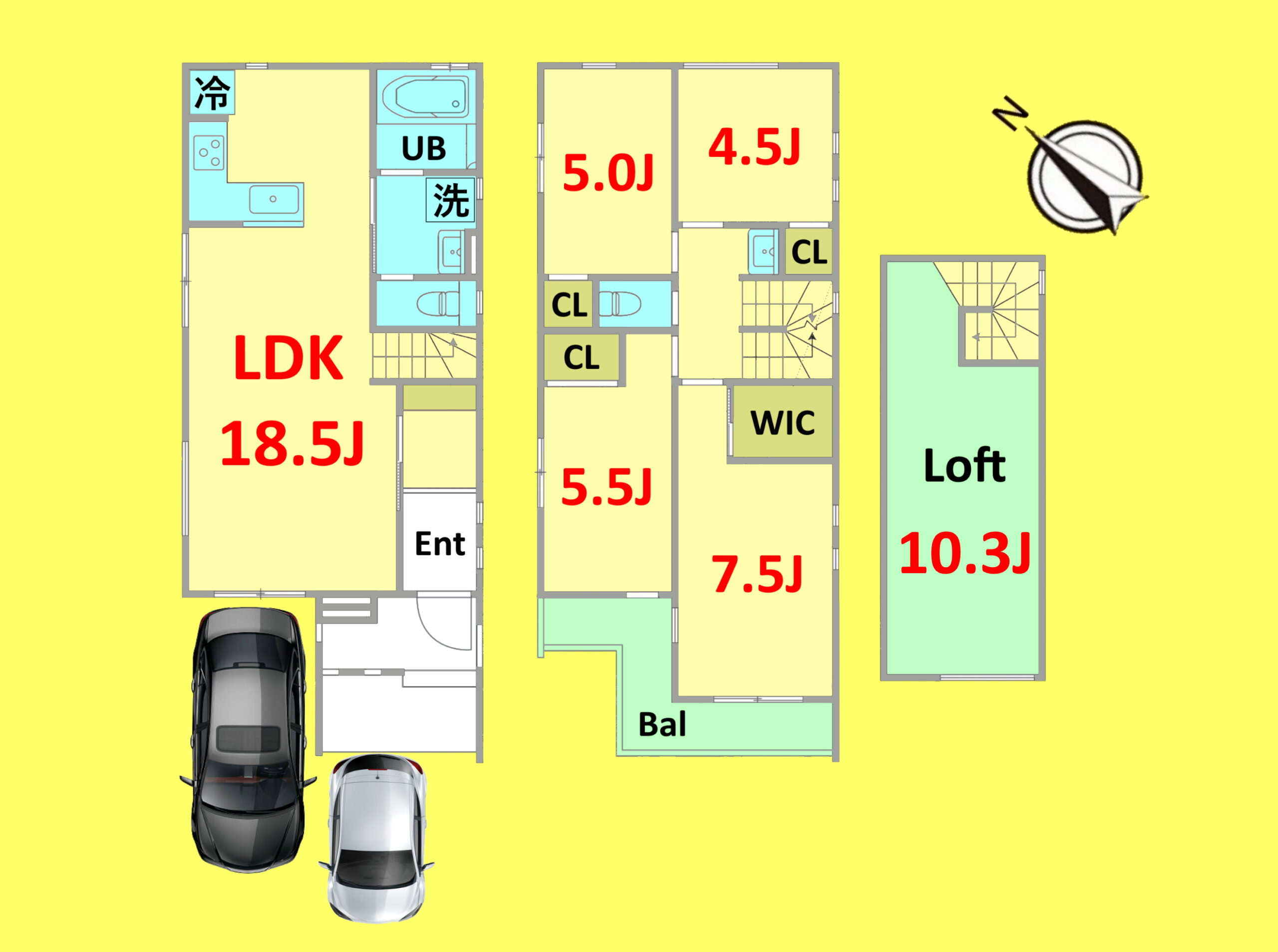 | 間取り | 4LDK ≪LDK18.5帖、7.5帖、5.5帖、5帖、4.5帖≫ |