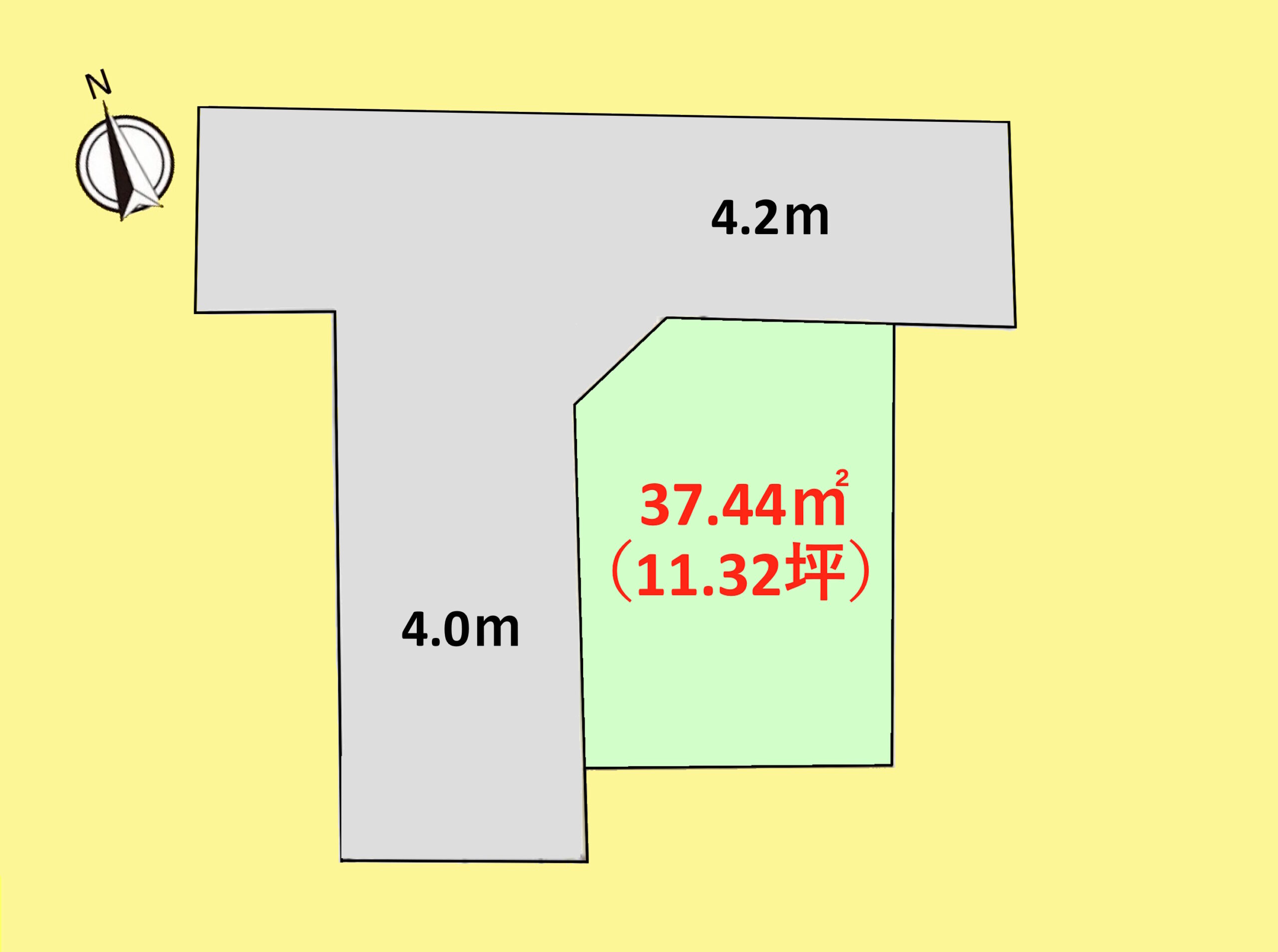 接道・方位 北4.2m、西4m 現況 建築中
