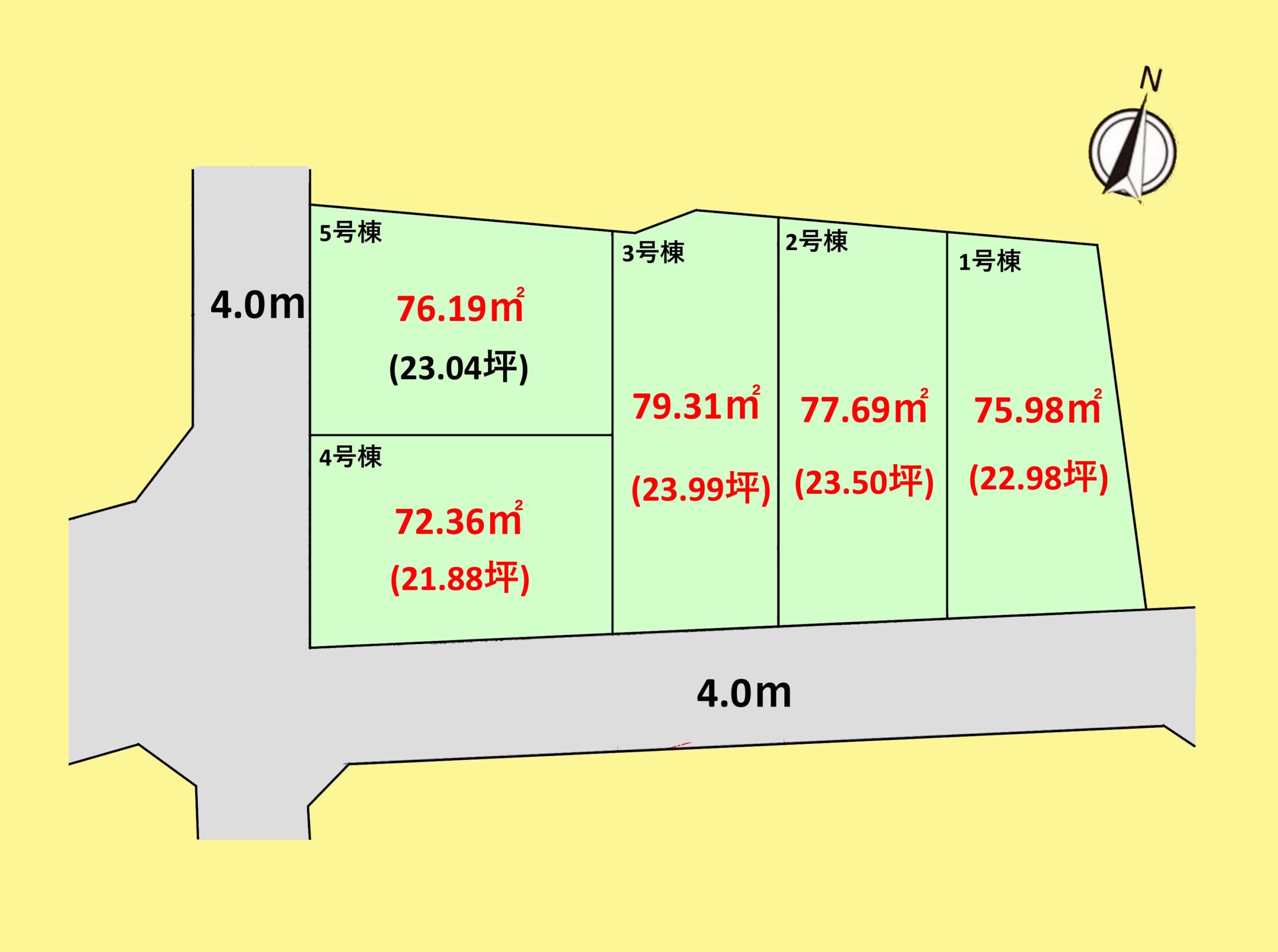 | 接道・方位 | 東4m、南4m | 現況 | 建築中 |