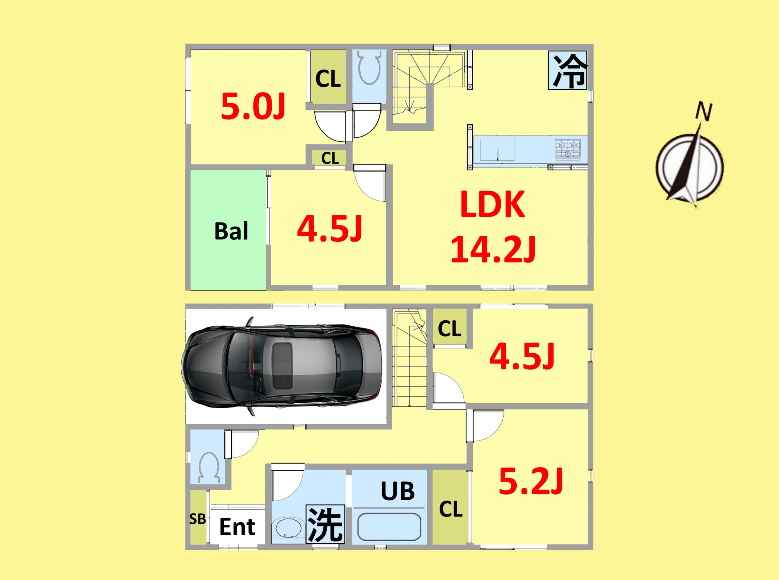 | 間取り | 4LDK ≪LDK14.2帖、5.2帖、5.0帖、4.5帖、4.5帖≫ |