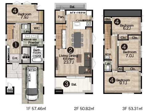 豊島区西巣鴨2丁目【2号棟】価格 8,990万円 種別 新築一戸建て 土地 49.03平米 / 約14.83坪 建物 89.49平米 / 約27.07坪 所在 東京都豊島区西巣鴨2丁目 交通 都営三田線「西巣鴨」駅 徒歩8分