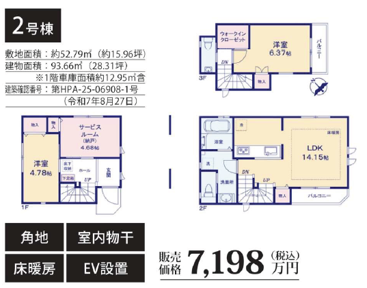 大田区南六郷1丁目価格 7,198万円 種別 新築一戸建て 土地 52.79平米 / 約15.97坪 建物 93.66平米 / 約28.33坪 所在 東京都大田区南六郷1丁目 交通 京浜急行線「雑色」駅 徒歩12分 -