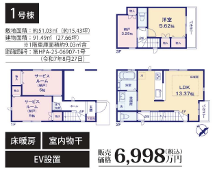 大田区南六郷1丁目価格 6,998万円 種別 新築一戸建て 土地 51.04平米 / 約15.44坪 建物 91.49平米 / 約27.68坪 所在 東京都大田区南六郷1丁目 交通 京浜急行線「雑色」駅 徒歩12分